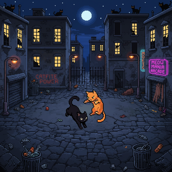 Welcome to the underground feline fight club where the streets' toughest cats settle their differences the old-fashioned way – with claws, chaos, and pixel-perfect combat!